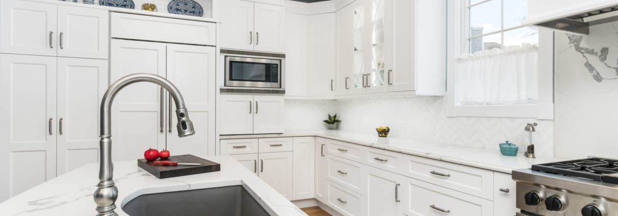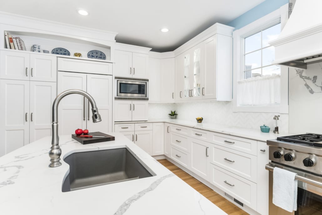 How can you incorporate color into your kitchen? If you’d like to have white cabinets with a pop of another color, our designers suggest using white cabinets for your upper cabinets, and using a different color cabinet for either the island and/or lower cabinets. Not sure which look you want? When you enter the design and build process with RI Kitchen & Bath Design+Build, our designers will create a few sample looks digitally for you to customize and envision what your new kitchen, bathroom, or other space would look like.
