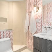 - Mixed textures and finishes will expand the spectrum of visual interest in the bath exemplified by combinations such as matte black faucets and warm brass pendants.